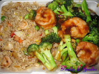 . I had Shrimp with Broccoli over Yang Zhou Fried Rice while the Hubby had his usual Pork